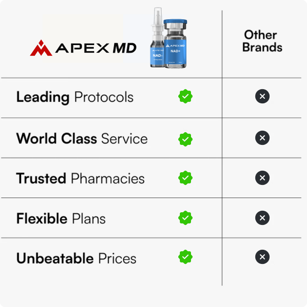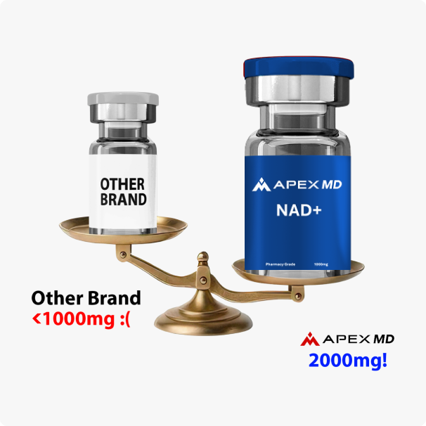 Imagine waking up energized, powering through your day without crashing, and recovering faster than you have in years. ApexMD’s medical-grade NAD+ injections help restore the cellular energy your body needs to perform at its peak—bringing back the vitality you thought was gone for good.