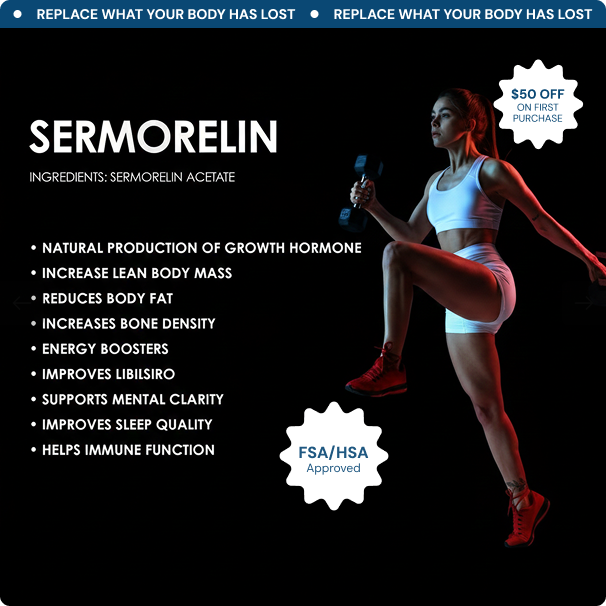 - Sermorelin optimizes growth hormone for muscle, recovery, and anti-aging