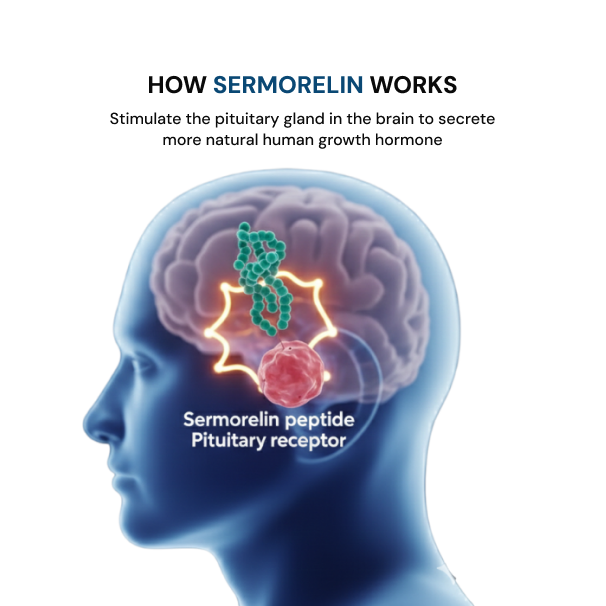 Sermorelin works by stimulating your body’s own natural growth hormone production rather than replacing it.